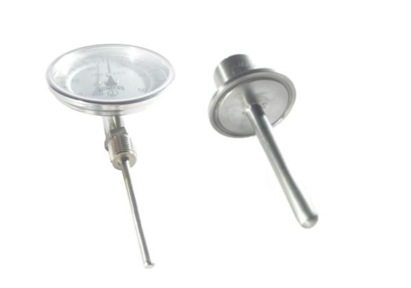 CUPLA SOLDADA CON MAGUITO CLAMP Y FUNDA PARA VAINA DE TERMÓMETRO, TODO EN ACERO INOXIDABLE. PROVINOX ACEROS INOXIDABLES.