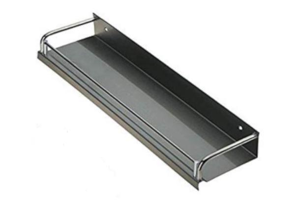 Estante liso con baranda, fabricado en acero inoxidable.